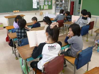 このままで終わらせるのはもったいないと、2年生に向けて読み聞かせ、