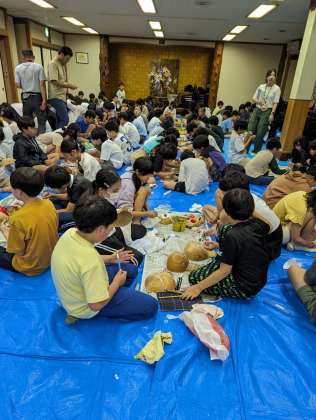 美味しい夕食の後は、栃木名物の夕顔を使い、ふくべ細工をしました。かんぴょうの材料である夕顔の95%は栃木で作られているそうです。