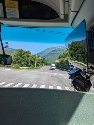 気温22℃です。いろは坂を登ります。運転手さんのテクニックが頼りです。