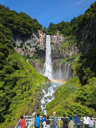 いろは坂では、野生のシカを見ました。快晴の空の下、華厳の滝に虹がかかっています。