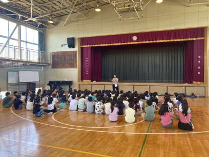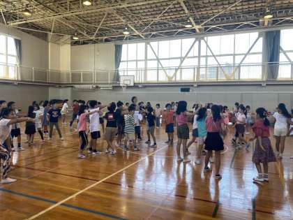 二学期が始まり、学年集会を行いました。転入生の自己紹介では、しっかり話を聞いて、温かい雰囲気で新しい友達を迎えることができました。また、二学期の学校生活や行事についての話も集中して聞くことができ、立派でした。レクリエーションでは猛獣狩りを行い、クラスを超えて交流しました。声を掛け合って協力する様子が見られ、二学期の子ども達の成長が益々楽しみになりました。