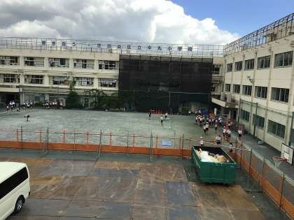 9月末まで工事があるため、狭い中丸小の校庭がさらに狭くなっています。