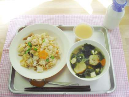 初日は児童のみなさんの進級を祝って「ちらしずし」にしました。