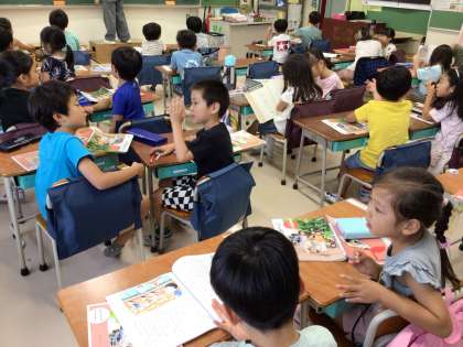 4時間目の1年生の道徳、5時間目の4年生の音楽の授業を見ました。
