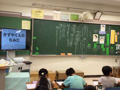 1年生は、仲間外れにされた子どもの気持ち、仲間外れに加担しそうになる主人公の葛藤する気持ちを教材から読み、「自分だったら〜したい。」と自分事として考え発表していました。クラスの友だちのいろいろな考えが数直線上で見える化され、白熱した授業でした。