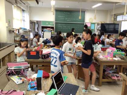 1時間目の3年生の図工、2時間目の3年生の社会、3時間目の5年生の算数の授業を見ました。