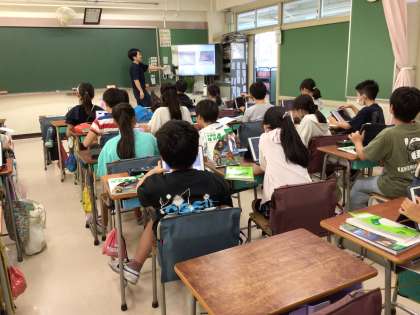 2時間目の2年生の音楽、4時間目の1年生の算数、5時間目の4年生の理科の授業を見ました。
