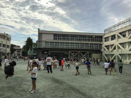 普通教室増設工事、洋式トイレ化工事、防火シャッター工事が終わり、今日から校庭が全面使用できます。久しぶりに校庭全面を使って外遊びを楽しんでいる子どもたちです。