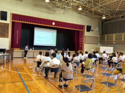 学校医さんから健診結果から中丸小の子どもたちの様子、気にしてほしいことなどをお話ししていただきました。内科医の先生からは、感染症予防、眼科医の先生からは、連続してスマホやタブレットの画面を見続けないこと、歯科医の先生からは、口元がぽかんとなっていないか観察し気になるようなら相談してほしいこと、薬剤師の先生からは、最近の子どもたちのエナジードリンクの多飲によるカフェイン過剰摂取について簡単なお話がありました。
