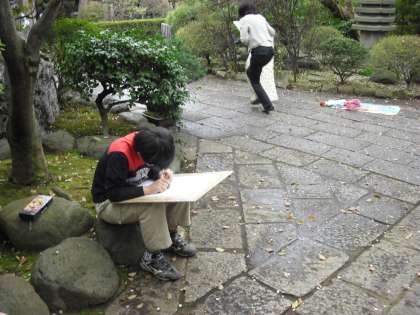 4月11日(水)は、龍雲寺の境内をお借りして、写生会を開きました。