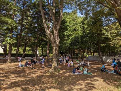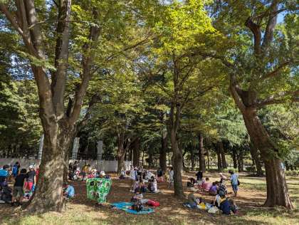 砧公園に着きました。おいしいお弁当をいただきます。朝早くから準備していただき、ありがとうございます。