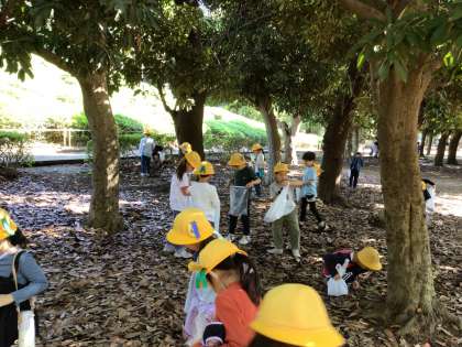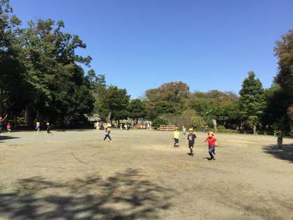 1年生は、世田谷公園で学年の友だちみんなと遊んだり、秋探しを楽しんだりしました。大きなドングリや赤や黄色の落ち葉を見つけ宝物にしていました。