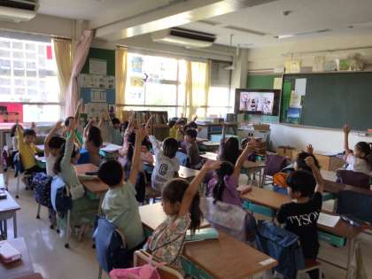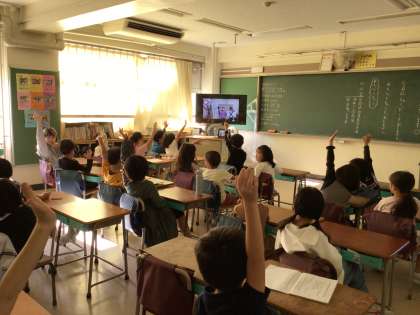 お月見やハロウィンなど秋に関係する〇×クイズを全校児童で楽しみました。