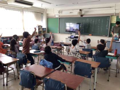 今日の朝は、集会委員会児童が作成した秋のクイズ集会がZOOMで行われました。