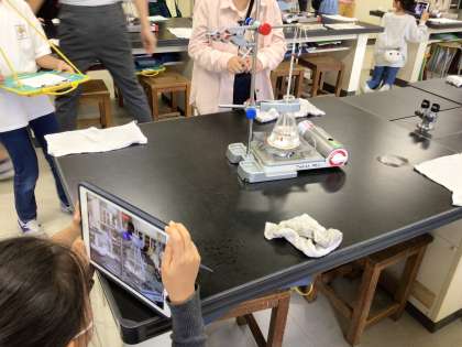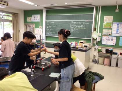 4年生が3・4時間目に水の沸騰の様子を観察していました。理科室の約束を守り安全に協力しながら準備をしていました。