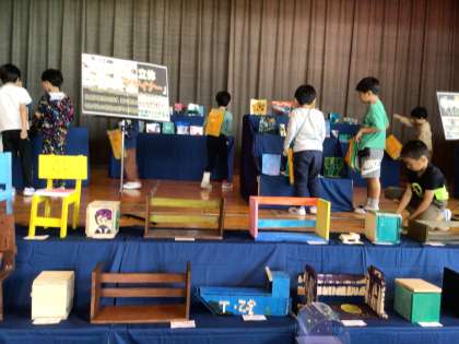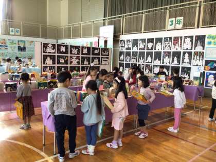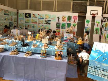 今日から中丸小学校の展覧会「ワンダフルワールド〜みんなのおもいをめぐる旅〜」が始まりました。今日は児童鑑賞日です。