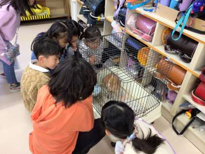 1年生は、生活科と国語の学習で、中丸のアイドル、ウサギのムギを教室で観察していました。観察して気付いたことを保護者の方に報告します。