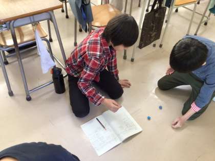 4年生は、コース別に分かれ、小数のたし算の学習に取り組んでいました。サイコロの出た目の数で小数をつくり、ゲームのように楽しみながらたし算の計算をしていました。