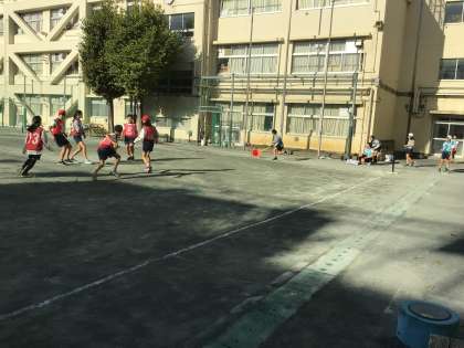 暖かな日差しの下、校庭での体育も元気に活動できています。