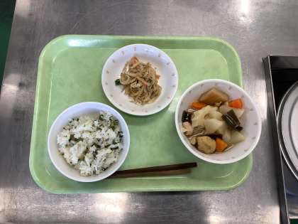 <本日の献立> 菜飯 おでん 野菜のごま和え