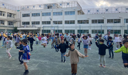 先日、短なわ朝会がありました。校庭で、一年生と六年生と一緒に跳びました。前跳び、後ろ跳び、駆け足跳び、二重跳びをしました。最後には、学年ごとに跳んで、それぞれの技を見合いました。一年生や六年生の跳ぶ姿を真剣に見て応援することができました。また、自分たちが跳ぶときには、引っかかっても何度も挑戦する姿が見られました。