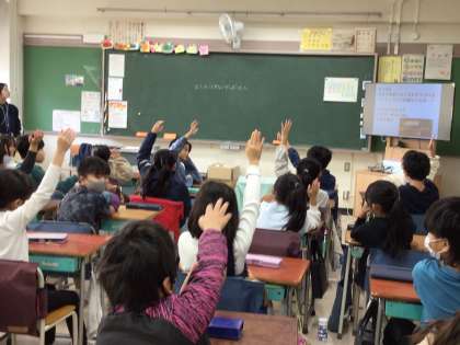 年末に演奏されるベートーヴェンの曲に関わるクイズ、ベートーヴェンが生涯に作曲した数クイズなどベートーヴェンについて知った後、「歓びの歌」を各クラスで歌いました。
