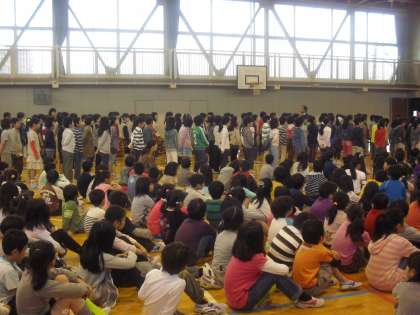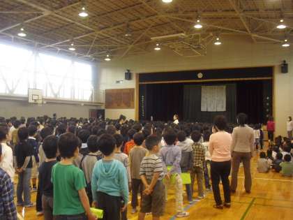 4月27日(金)、体育館にて音楽朝会を行いました。