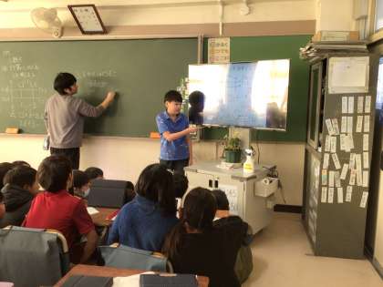 4年生の算数では、既習の整数のわり算の考えを使って小数のわり算の考えを導き出します。自分の考えを分かりやすく説明していました。