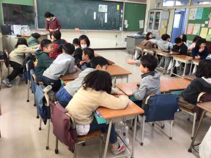 1時間目は4年生の算数「小数のわり算」、2・3時間目は2年生の道徳「きまりのない学校」と国語「おにごっこ」を見ました。