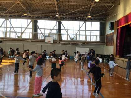 今日の朝は短なわ朝会でした。休み時間や体育の時間にも練習しているので、前回よりもスムーズに回しています。特に1年生の成長ぶりは目覚ましいです。来週の学校公開でも休み時間や体育の時間の子供たちの動きに注目してみてください。