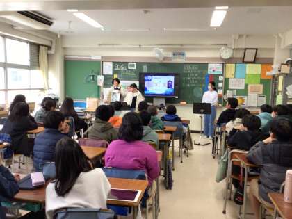 4時間目の6年生の総合的な学習の時間の授業を見ました。学年合同でSDGs発表会を行っていました。2030年までに解決する世界の問題について、これまで調べてきたことをグループごとに発表しました。さすが、中丸の6年生。最後の発表会だけあって発表内容もプレゼンテーションの工夫もすばらしいです。