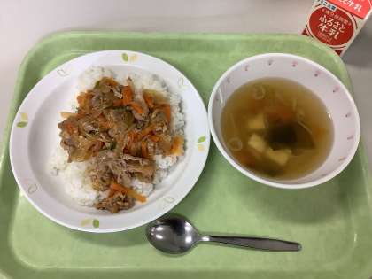 スタミナ丼 わかめスープ 牛乳