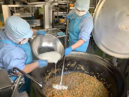 給食室一同、力を合わせて、安全安心で美味しい給食の提供に努めてまいります。