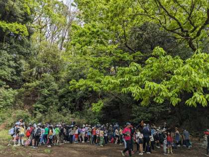 つくしのアスレチックに着きました。新緑が美しいです。学年の友だちとたくさん遊びます。朝早くからの準備、ありがとうございました。