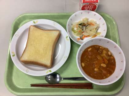 はちみつレモントースト ビーンズシチュー 野菜ソテー 牛乳