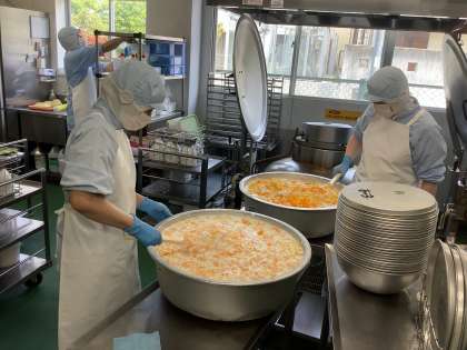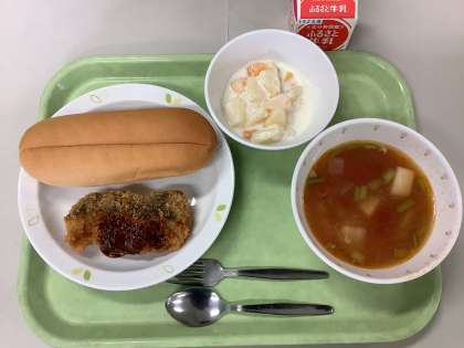 フィッシュサンド ミネストローネ フルーツヨーグルト 牛乳