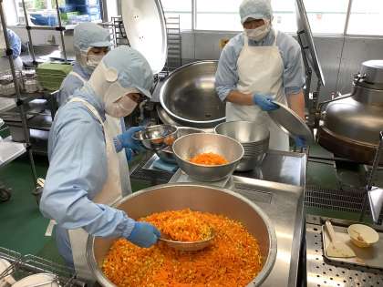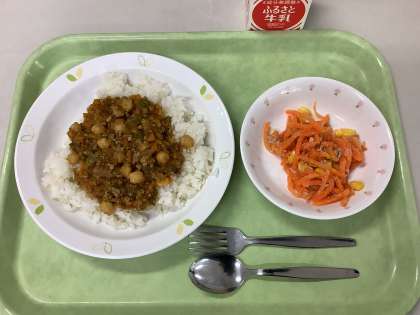 ガルバンゾーカレーライス にんじんサラダ 牛乳