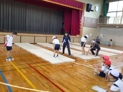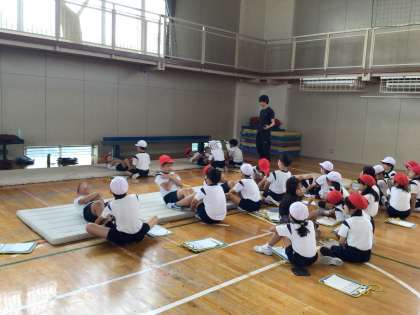 今日から体力テストの取組を行います。シャトルランだけは、熱中症対策として気温や湿度が高くならない先月のうちに行っています。先月に引き続き、今月も低学年では保護者の方に、体力テストの計測補助のお手伝いをお願いしています。ご協力いただきありがとうございます。