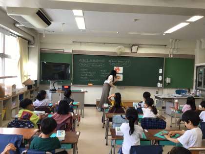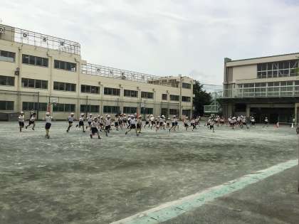 3年生は校庭で体づくりの運動に取り組んでいました。「ねこ」と「ねずみ」に分かれ追いかけっこでウォーミングアップをしてから、フラフープなどの器具を使って様々な動きに取り組みます。体力テストで、自分の得意な動き、苦手な動きが分かった子どもたち。体育の授業では、少しでも子どもたちの苦手意識がなくなる工夫をしています。
