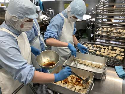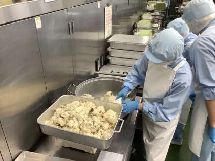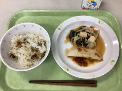 豆ごはん 魚のステーキソース 高野豆腐入りみそドレサラダ 牛乳