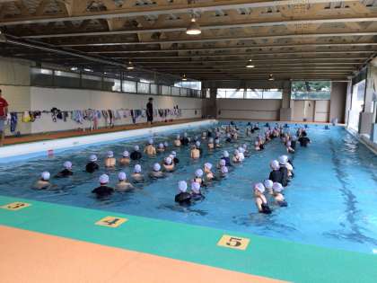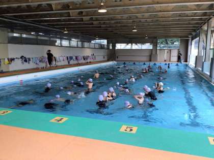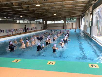 5・6時間目は4年生が今年初の水泳学習を行っていました。水にぬれると、やや肌寒い気温ですが、子どもたちは集中して安全に学習に取り組んでいました。