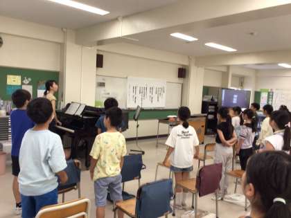 今週金曜日の朝の音楽発表会(4年生)に向け、音楽室では4年生の子どもたちが声を響かせています。毎月の音楽朝会ですが、今年度からは毎回各学年の発表を取り入れ「音楽発表会」という形で、該当学年の保護者の方に子どもたちの日ごろのがんばりを見ていただきます。楽しみにしてください。