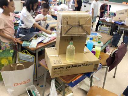 3年生は図工で自分のオリジナルロボットを作っています。細かいところまで考えて「自動販売機」ロボットを作っている子もいました。