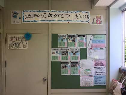 1時間目、つるがくぼ公園清掃をがんばった4年生ですが、教室前廊下にはこれまでの取組とこれからの予定を新聞にして掲示しています。今後は地域にもこの4年生の取組を掲示していきますので、楽しみにしていてください。
