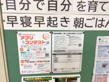 今日から7月。全校朝会では、1学期の振り返りと夏休みに向けてお話をしました。「早寝早起き朝ごはん」という規則正しい生活リズムが、元気な体と心をつくるのにとても大切であるということは分かっているけれど、なかなか取り組めない人もいることも伝え、中丸の子どもたちのアイデアで解決してみようと呼びかけました。今日から9月30日までアプリのアイデアを募集しています。