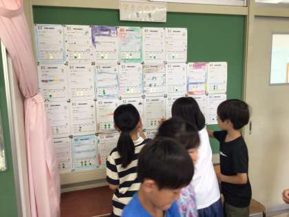 2年生は6月の学習と生活面の振り返りを行っていました。金色のシールがどんどん増え、自分ががんばったこと、できたことが目で見て分かってうれしそうです。毎日、子どもたちも先生方もがんばっています。