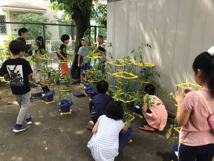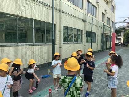 昨日よりは日差しが弱く、熱中症指数も30未満なので外での活動ができます。1年生が生活科の学習でシャボン玉遊び、2年生が生活科の学習でミニトマトに肥料をあげていました。自分の背丈よりも伸びたミニトマトの青い実をうれしそうに観察していました。