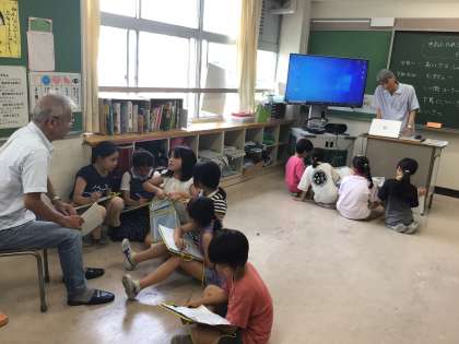 3年生の教室では、卒業生の方をお招きして、昔の中丸小についてインタビューしています。今年、開校73周年の中丸小。第5期生の方をはじめとする大先輩のお話を一生懸命聞きメモを取っていました。