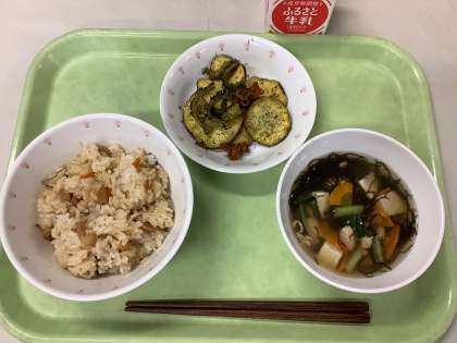 シシジューシー 野菜チップス もずくスープ 牛乳