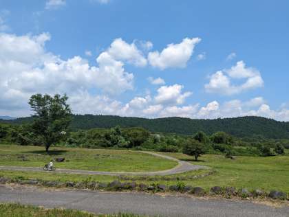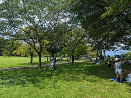日光だいや川公園に着きました。広い芝生とトンボの群れに興奮気味の子どもたちです。今からお弁当をいただきます。朝早くからのご準備、ありがとうございました。
